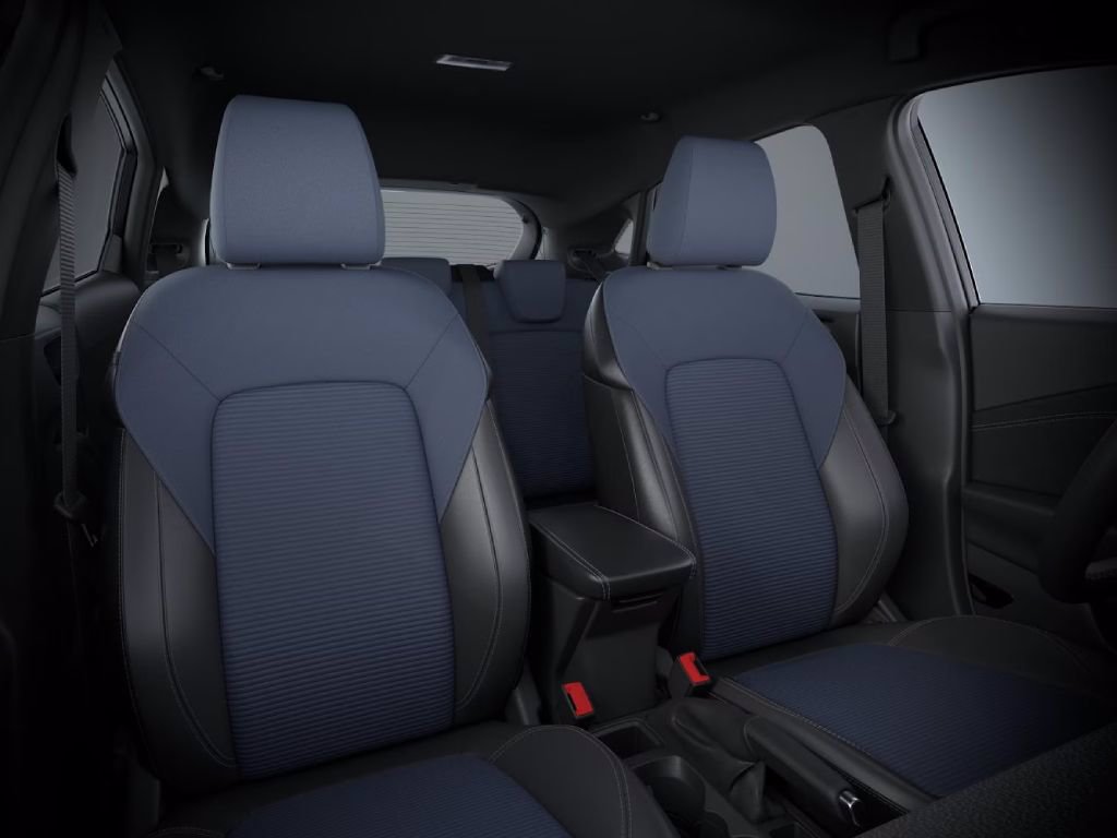 • Sedili in vinile nero con impunture blu ed inserti in tessuto nordic blue